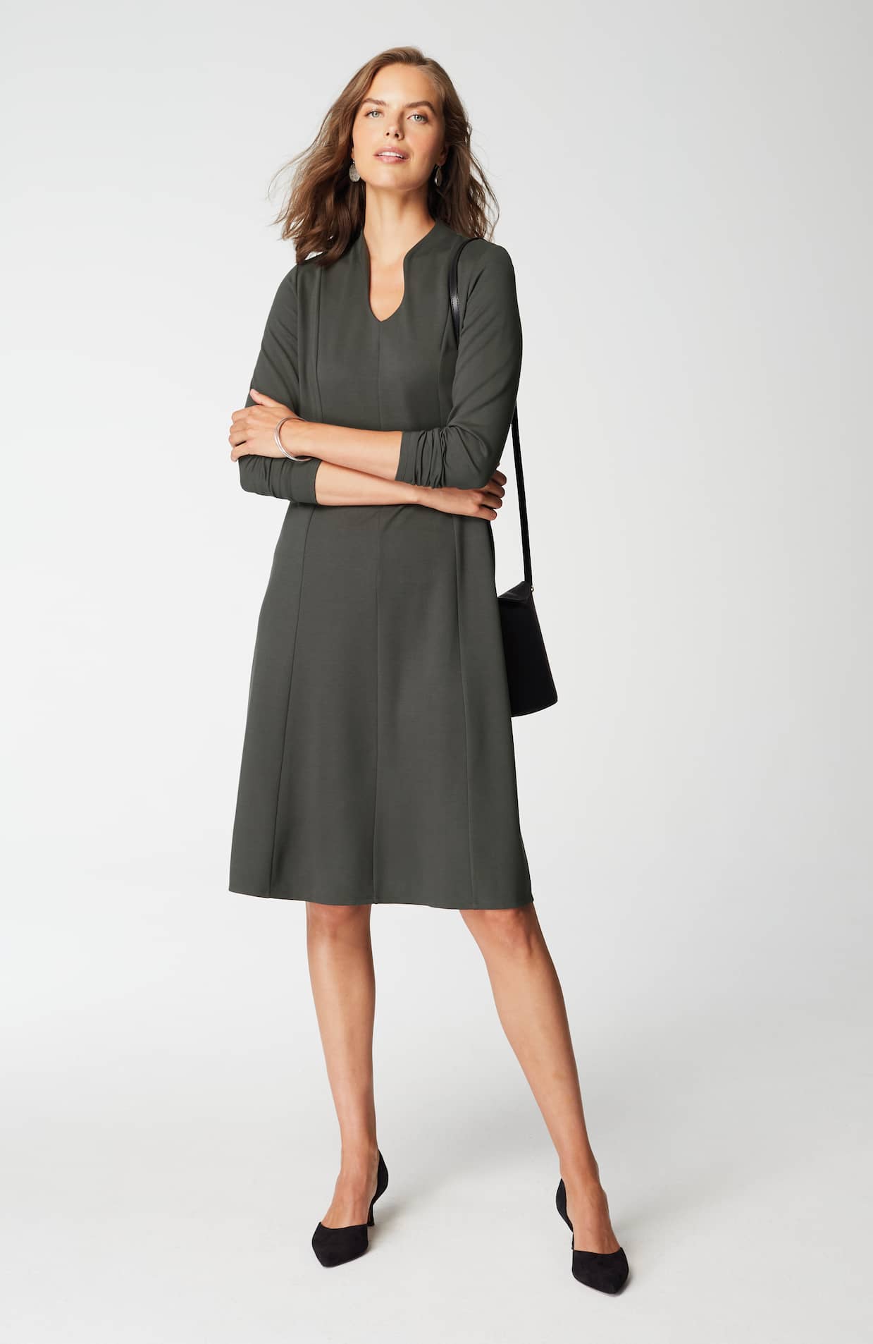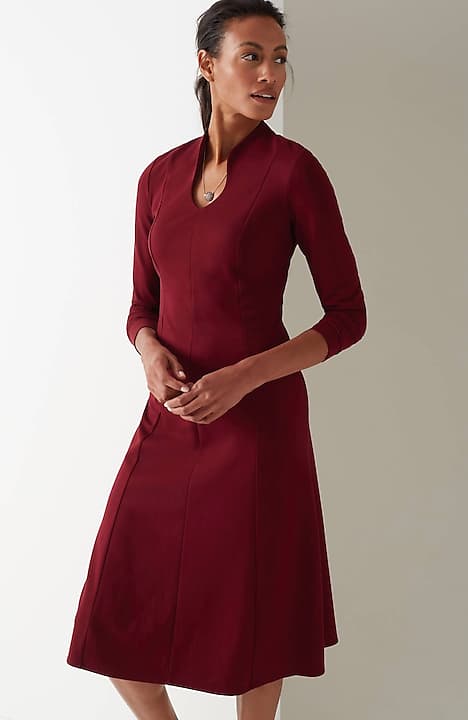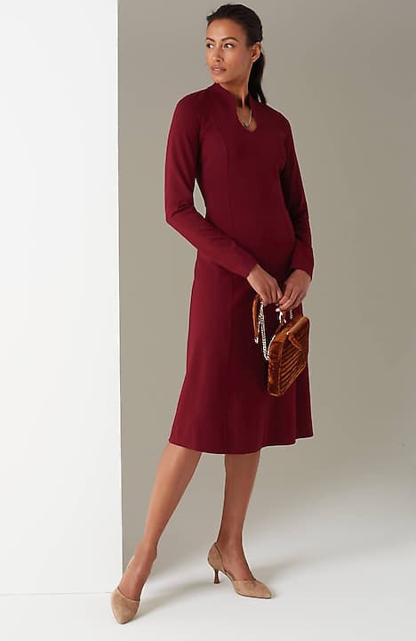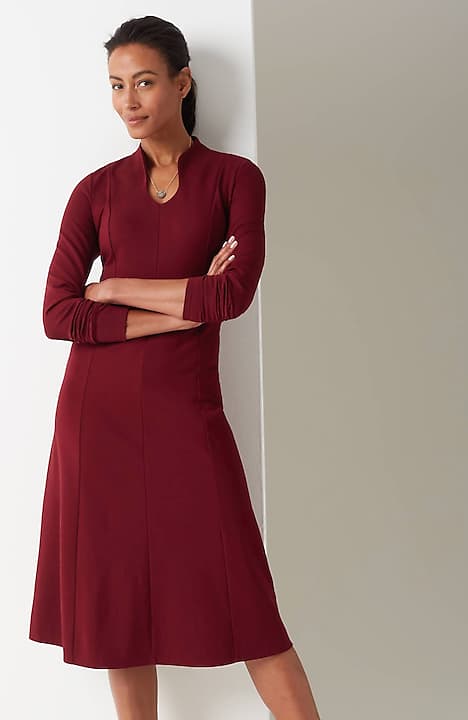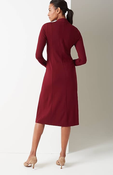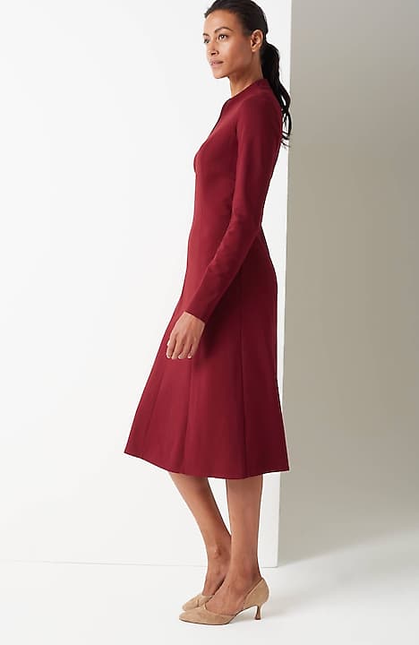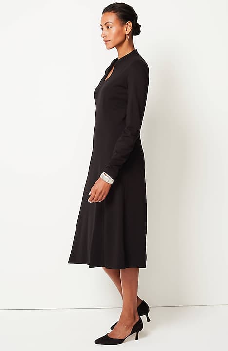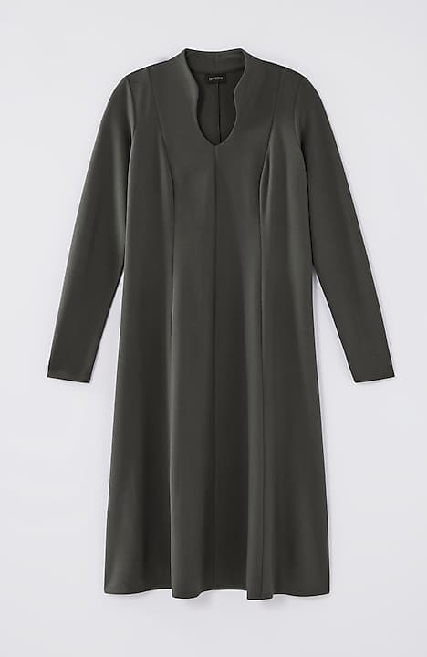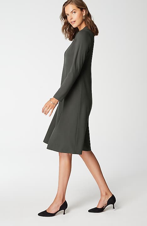 Spectacularly soft, lightweight and comfortable, thanks to double-face jersey, a fabric-weaving technique that creates a texture nothing short of sublime. The A-line gives it waist shape and movement, the sculptural neckline gives it (official) effortless style status.