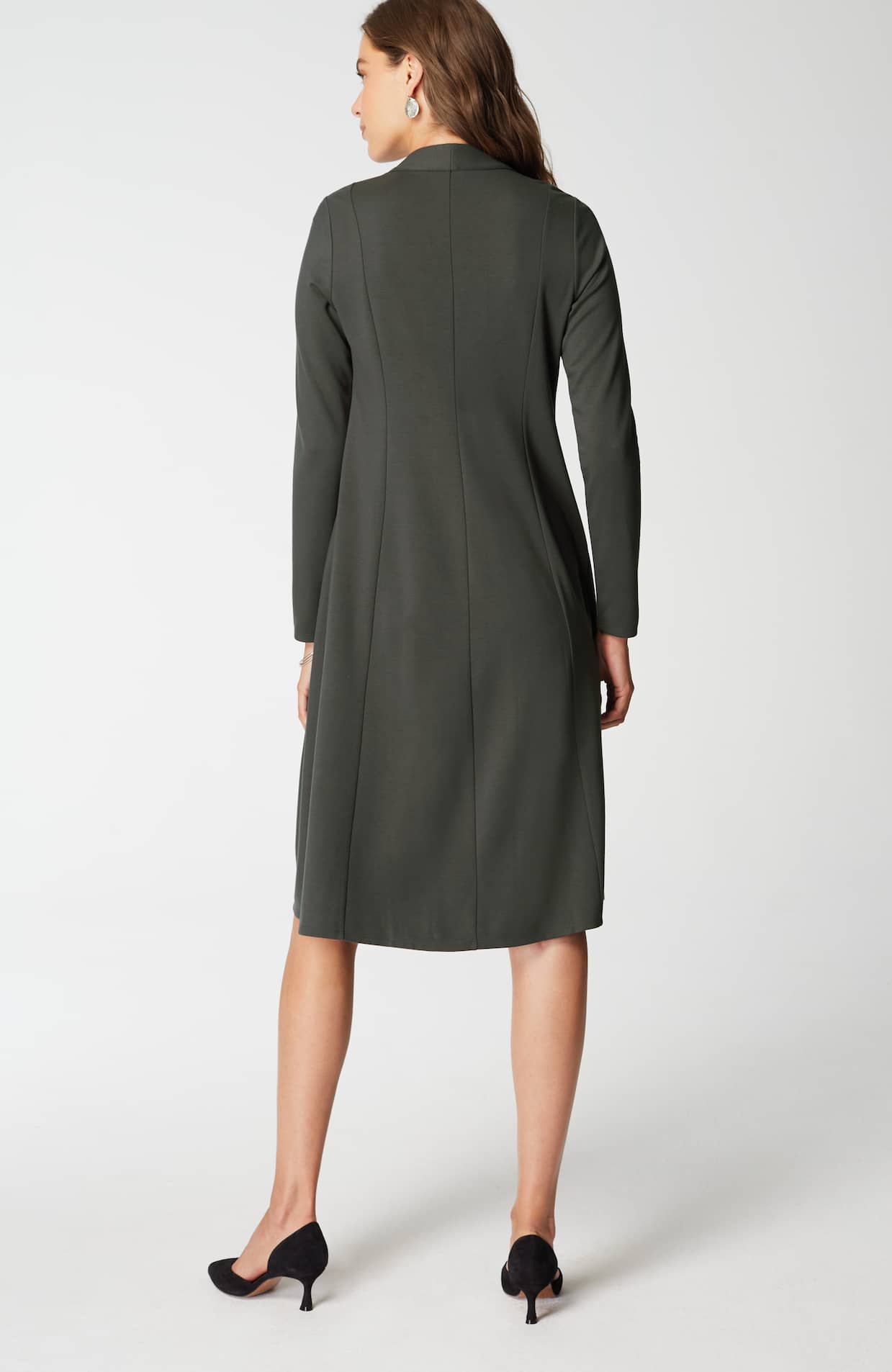 - Below-knee length: R Medium 42½" center back, R 2X 44½" center back, P Medium 40" center back, T Medium 45" center back