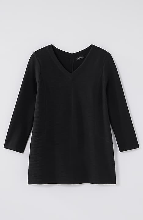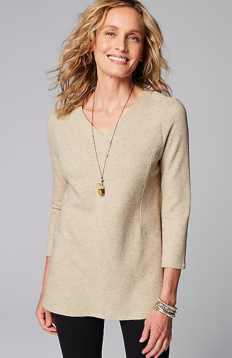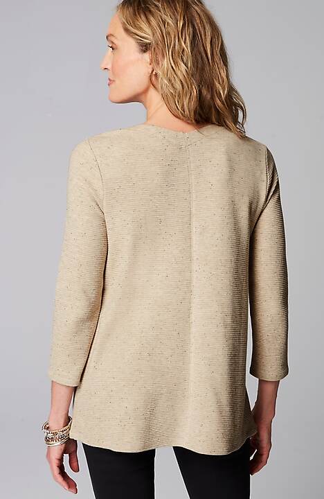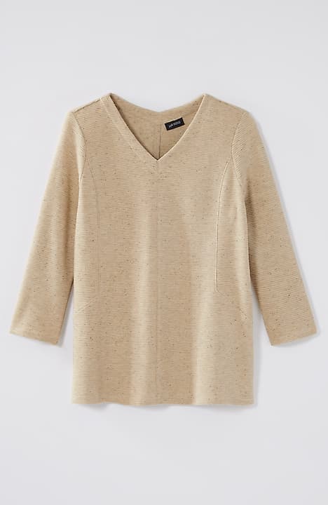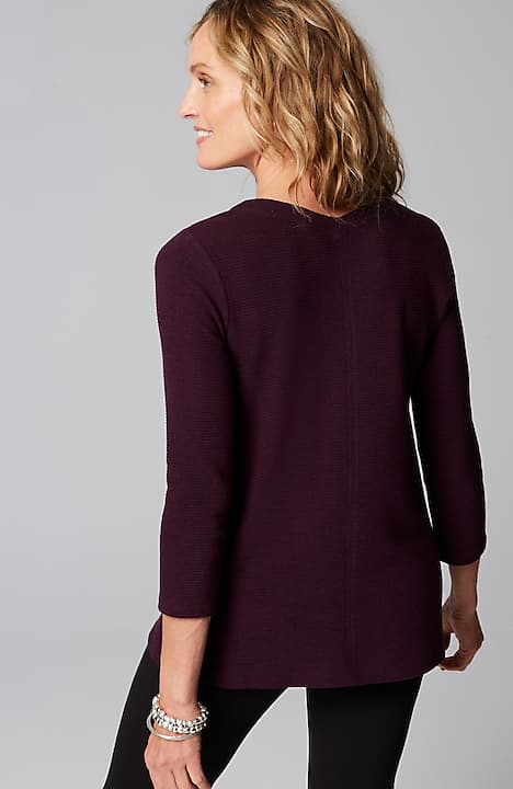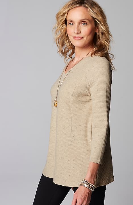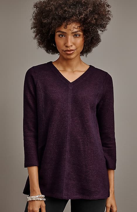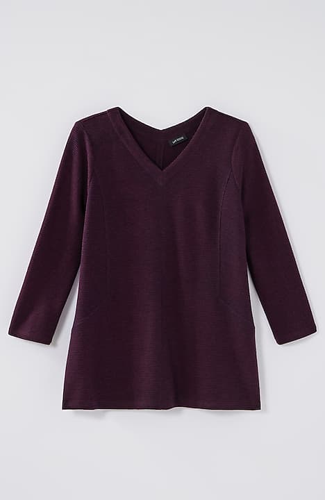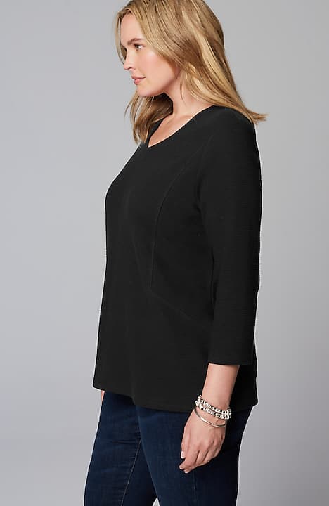The ottoman-knit top your wardrobe calls for is rich in texture and so versatile. We’ve added an elegant double-V neckline as well as slimming princess and center seams in the front and back. Available in solid or heather.