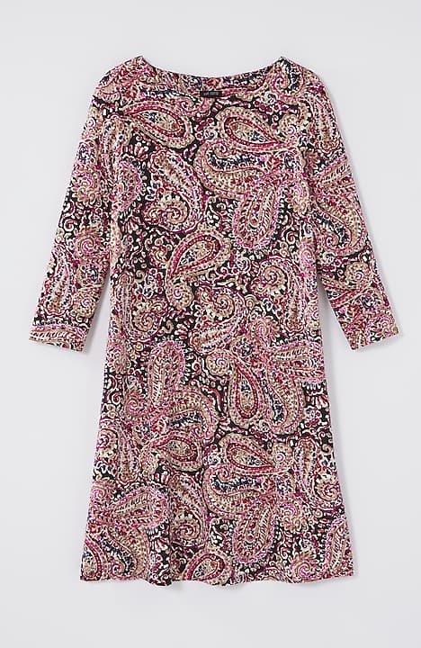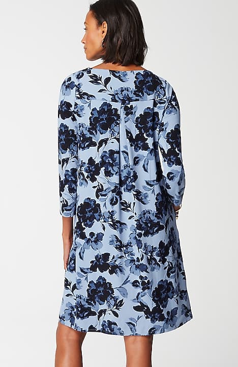 A classic A-line silhouette, thoughtfully placed back pleats and pockets—our knit dress is simply timeless. Made from soft LENZING™ ECOVERO™ Viscose fibers (plus a little Lycra® spandex for stretch). The manufacturing of LENZING™ ECOVERO™ Viscose fibers generates up to 50% lower emissions and water impact compared to generic viscose. Unlined.