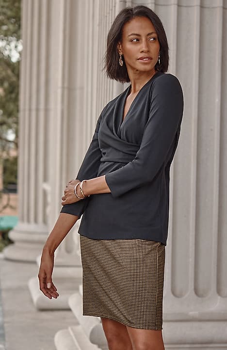 Part of our limited-edition Wearever Works Collection where tailored comfort is perfected in styles that look polished in or out of the office. Elevate your weekdays with our classic pencil skirt designed in a soft, more substantial rayon-blend jersey knit. The fabric is double-knit so it's slightly structured with a medium weight, a polished finish and an easy drape. The smooth-fit waistband keeps you comfortable all day long. Pair with our coordinating Wearever double-face jersey blazer for a made-to-match look. Center-back vent.