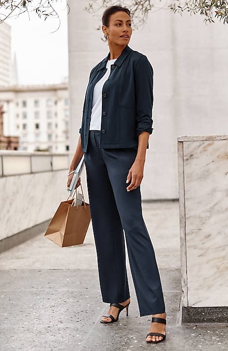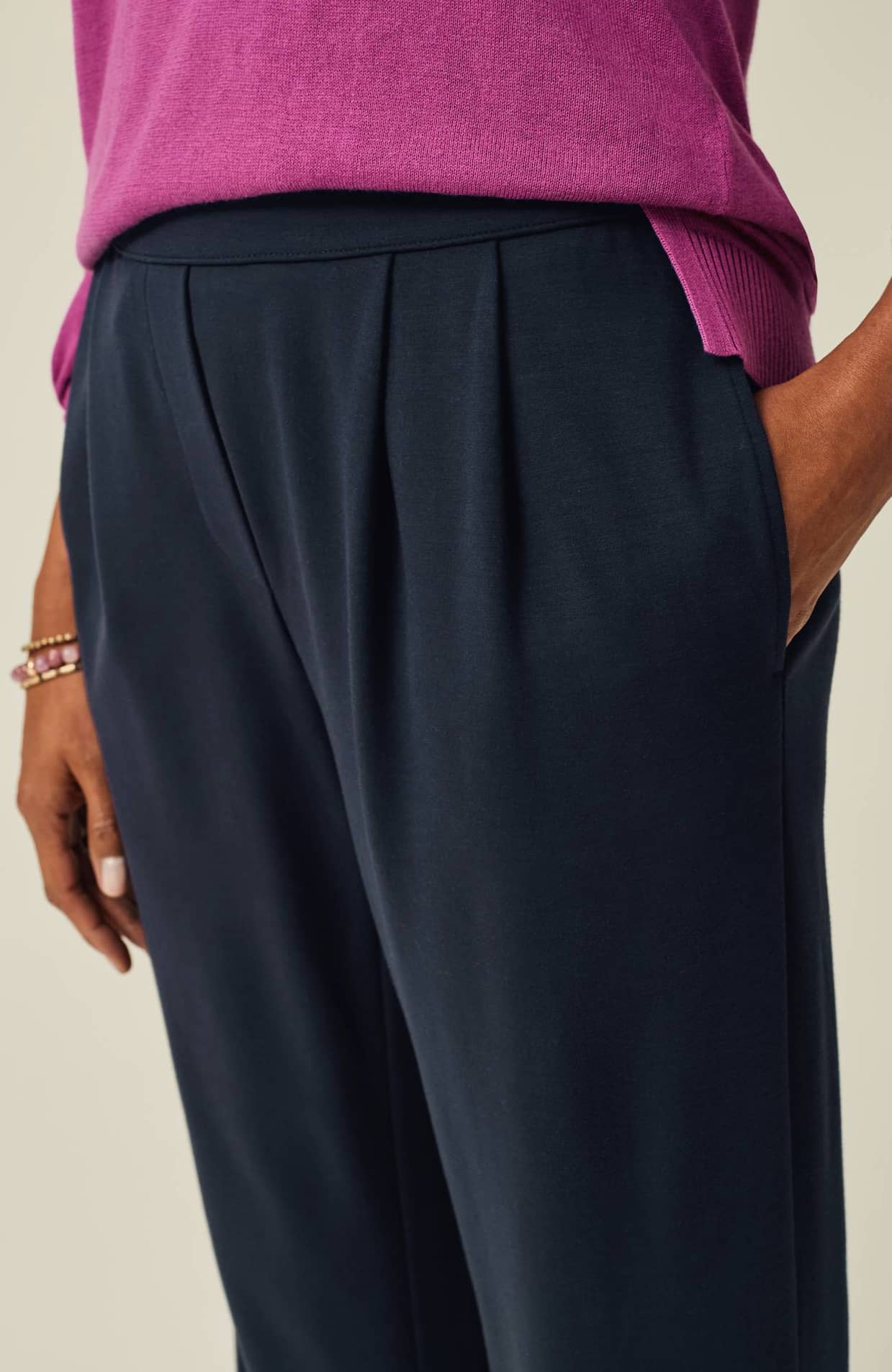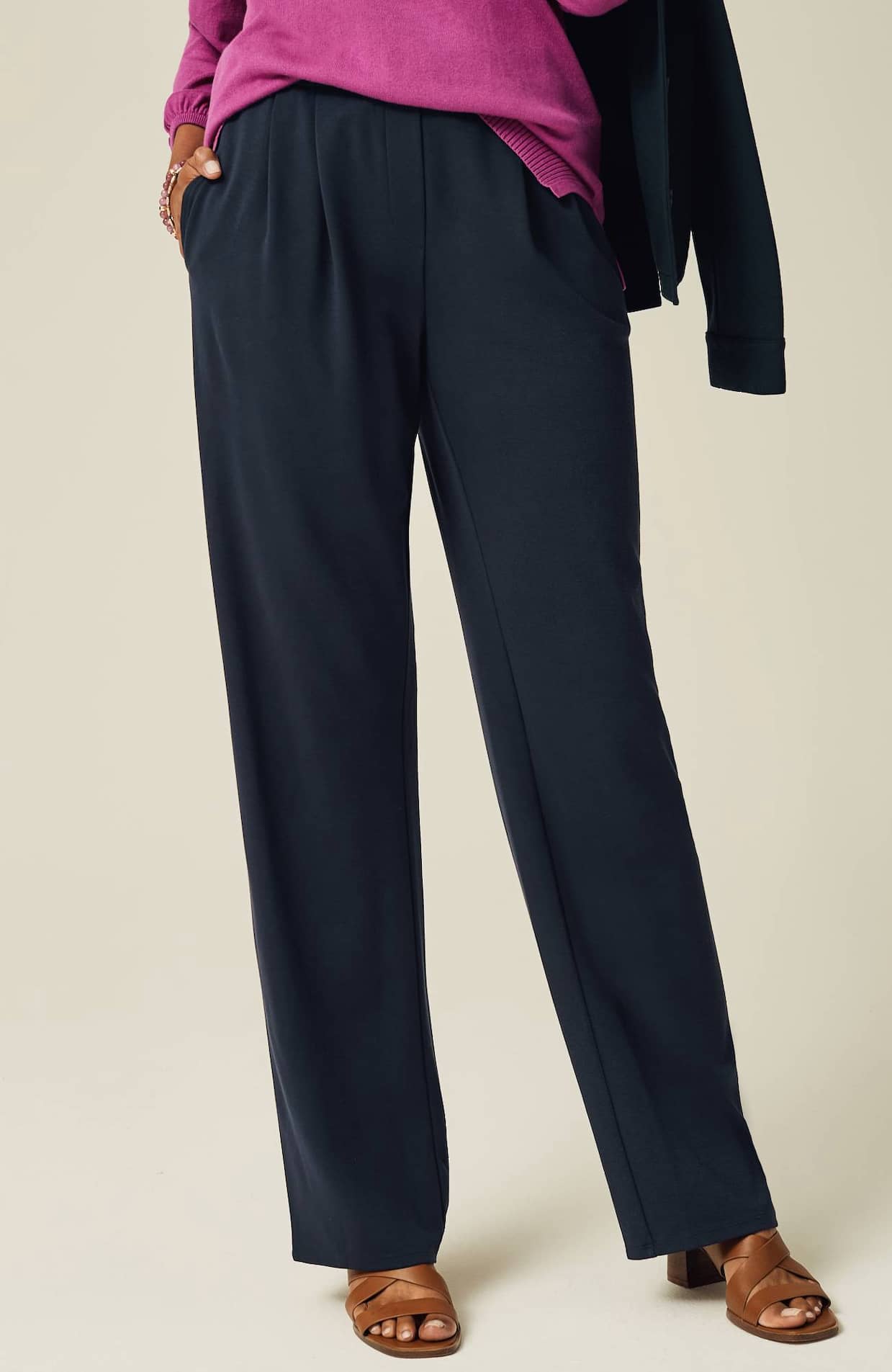 Designed in a soft, more substantial rayon-blend jersey knit, our straight-leg pull-on pants are made for total comfort and ease. The elasticized waistband and on-seam pockets are practical, while the double inverted pleat on each leg adds refined appeal. They're the perfect pants to go from workdays to weekends. Faux fly.