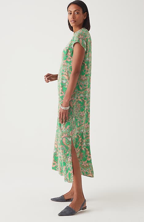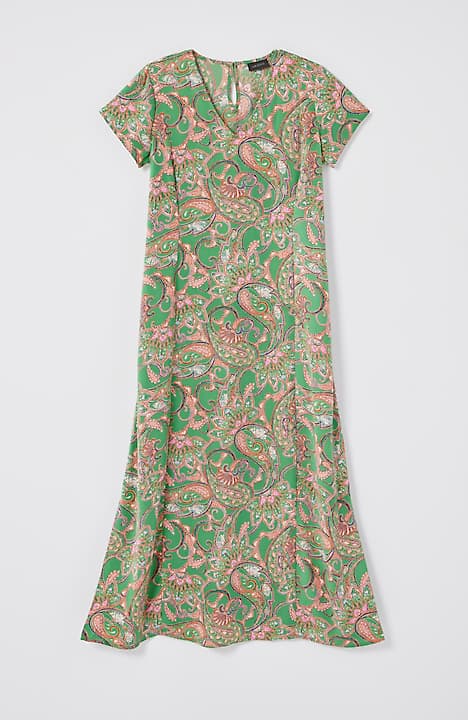 You can never have too many effortless dresses. Our streamlined maxi features figure-flattering princess seams, cap sleeves and a lush green paisley print. Finished with a mother-of-pearl buttoned back keyhole. Oh, and did we mention it has pockets?
