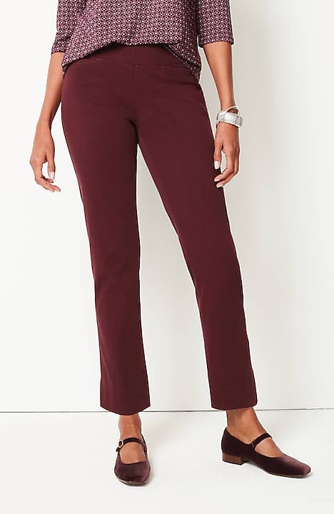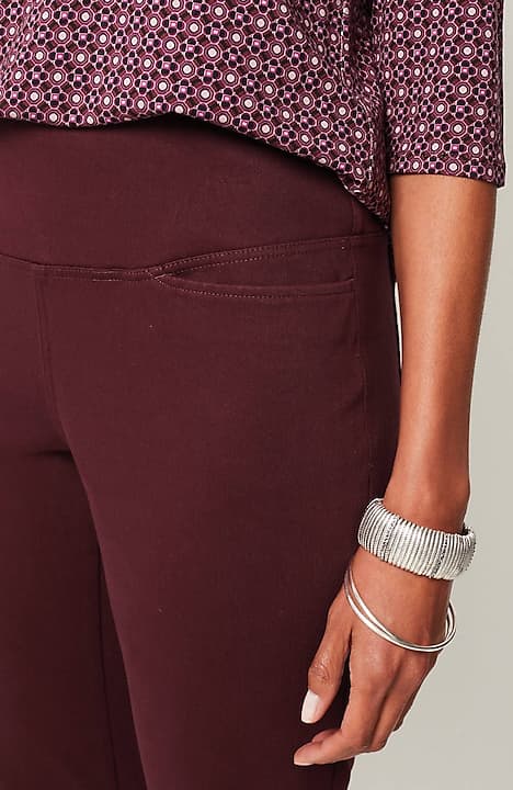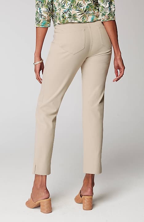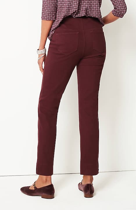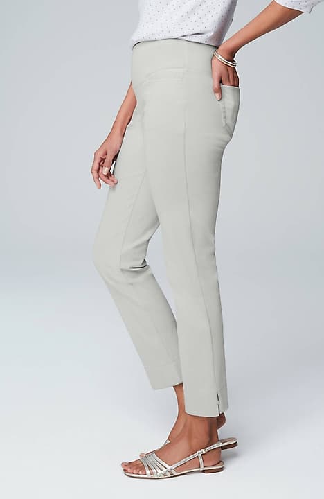 Introducing our ankle-length slim-leg jeans that are so comfortable, you won't want to take them off. The smooth-fit waistband and pull-on design will remind you of your favorite leggings, while the back patch pockets and vented hemline give them the polish of a tailored pant. Slip pockets at front.